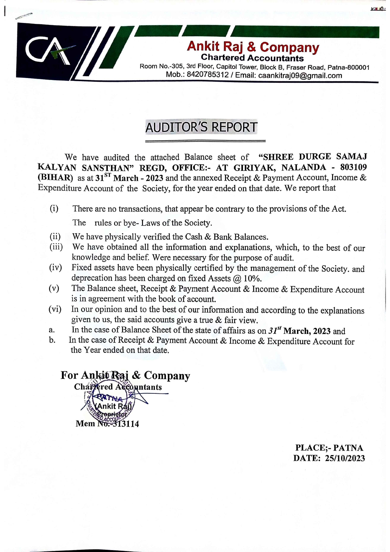 of Sri Durge Samaj Kalyan Sansthan Year 2023