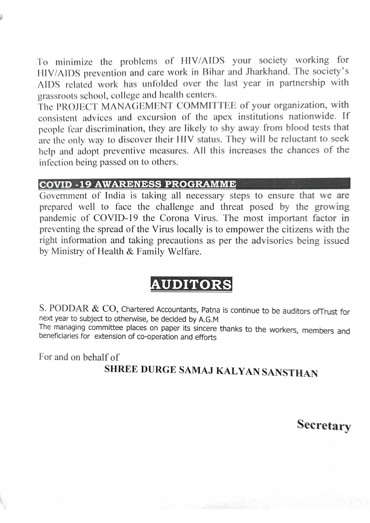 of Sri Durge Samaj Kalyan Sansthan Year 2020