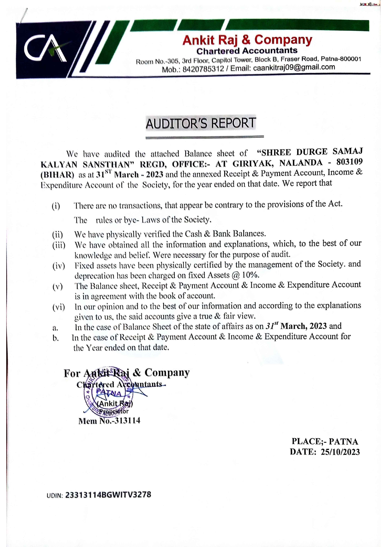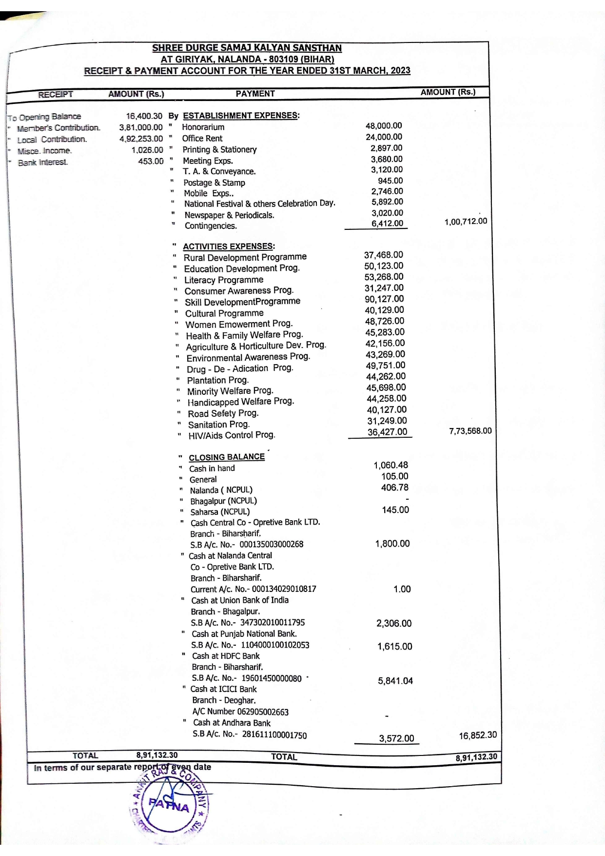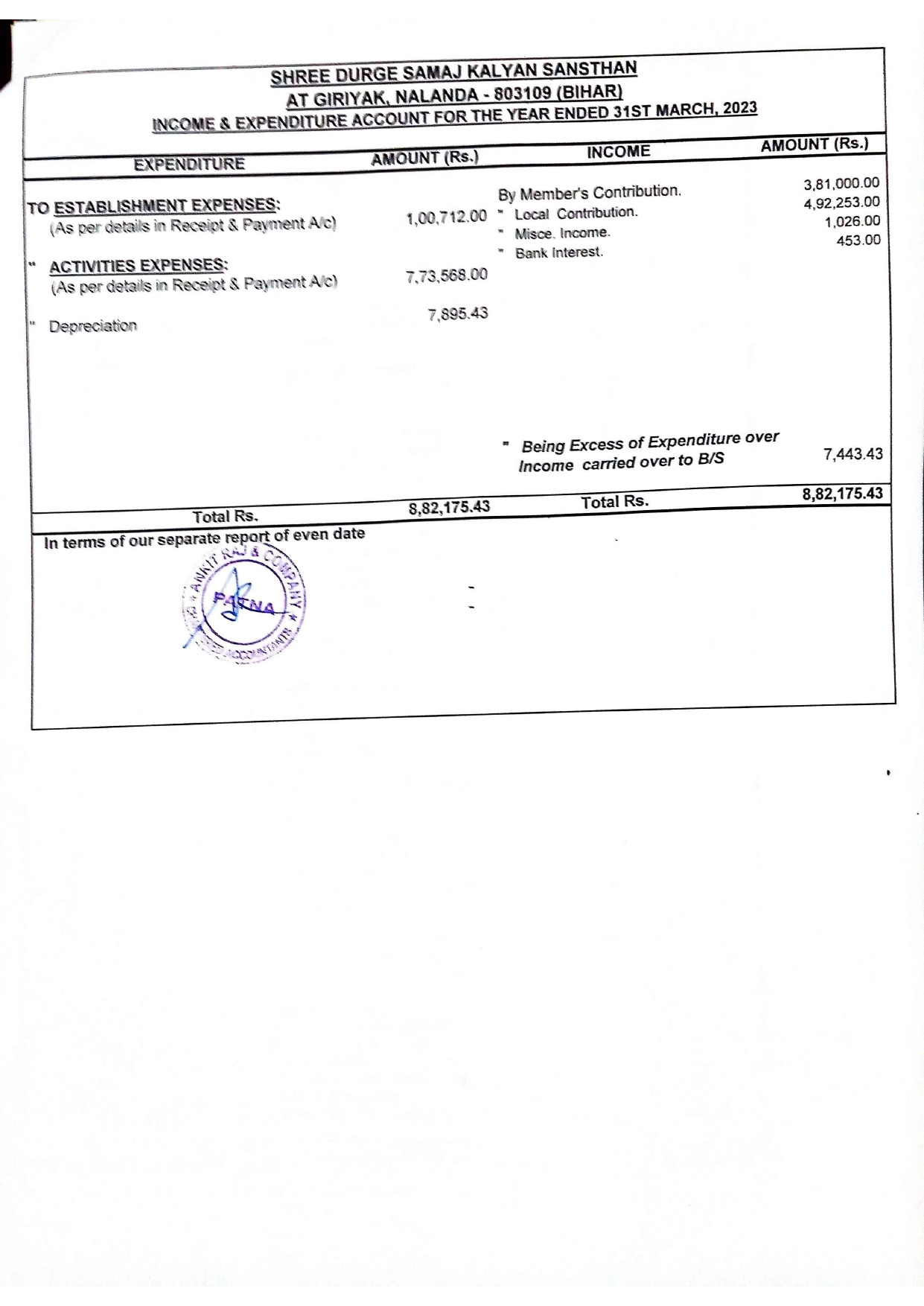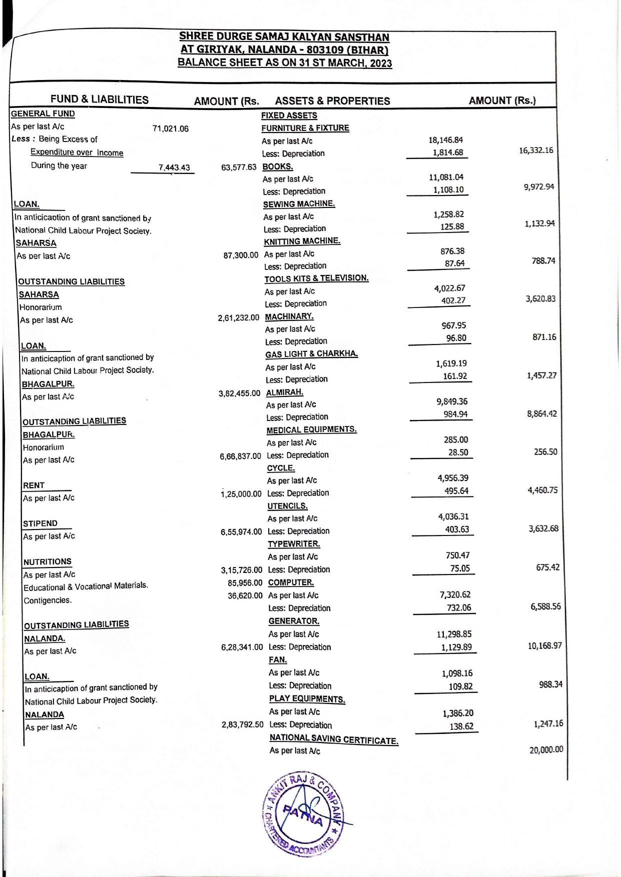 of Sri Durge Samaj Kalyan Sansthan Year 2023